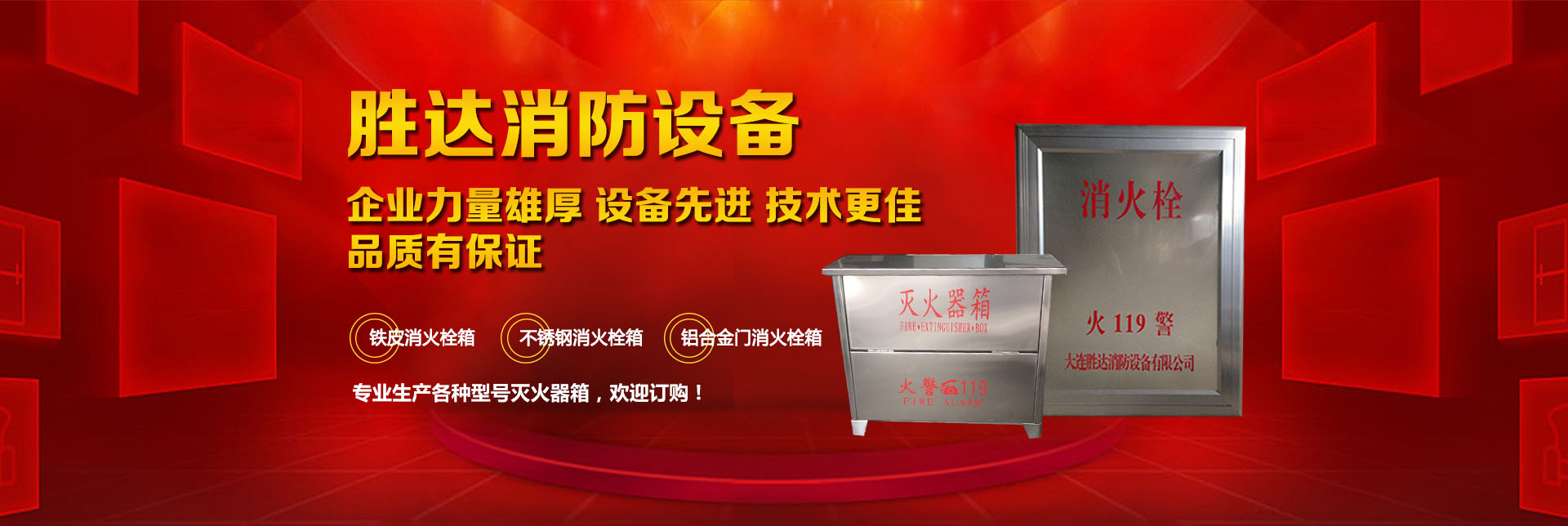 大連勝達(dá)消防設(shè)備有限公司本公司企業(yè)力量雄厚、設(shè)備先進(jìn),生產(chǎn)的所有消防產(chǎn)品均符合國家GB14561—J標(biāo)準(zhǔn),品質(zhì)有保證。我公司地理位置優(yōu)越,位于大連市甘井子區(qū)西北路847號交通便捷,公司專業(yè)生產(chǎn)各種型號滅火器箱、消火栓箱、鐵皮消火栓箱、不銹鋼消火栓箱、鋁合金門消火栓箱。消火栓箱系列產(chǎn)品,全部按照國家標(biāo)準(zhǔn)和行業(yè)標(biāo)準(zhǔn)進(jìn)行生產(chǎn),并通過國家合格鑒定,得到了國家固定滅火系統(tǒng)和耐火構(gòu)件質(zhì)量監(jiān)督檢驗中心的產(chǎn)品認(rèn)證和產(chǎn)品形式報告書。我們的消火栓箱系列產(chǎn)品具有外形美觀、結(jié)構(gòu)先進(jìn)、開啟靈活、使用可靠、消火應(yīng)急燈具標(biāo)志清晰、光色好、功耗低、使用壽命長、安裝使用簡便,可廣泛應(yīng)用于高層建筑和工業(yè)等一些公關(guān)場所使用。
